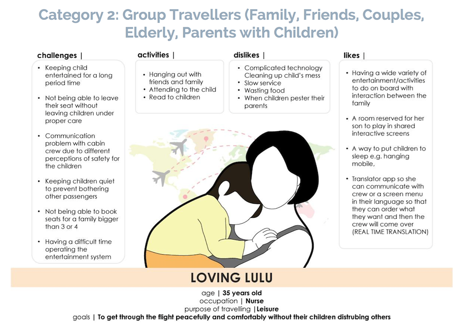 Boeing had sent half of our team to Hong Kong, to do observations on board the plane, as well as to find out how our target audiences behave and feel. Our observations and interviews helped us tremendously with user empathy, and our formation of personas to help us better understand our target audiences.