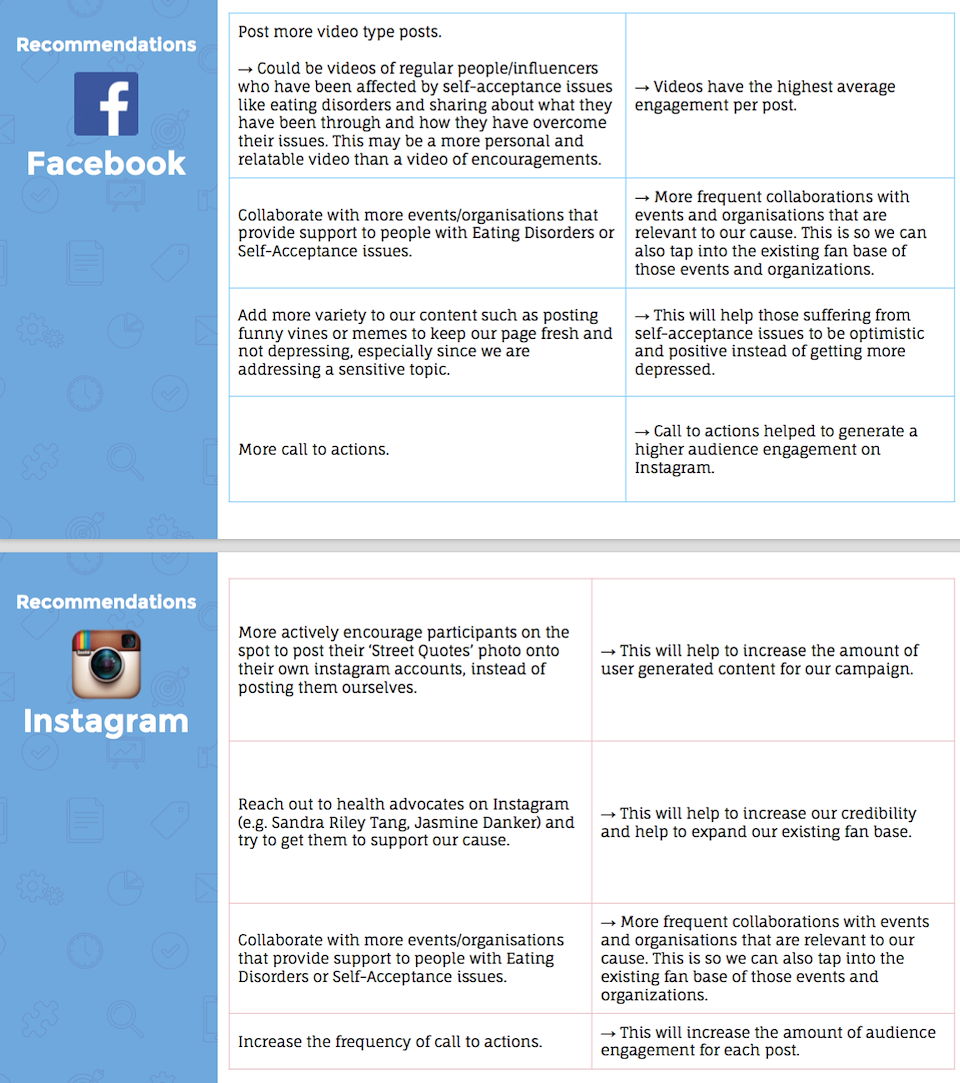 I also learnt that social media is a very practical platform to tackle sensitive topics as it can be an outlet to look for support. Many people who were in recovery from their eating disorders constantly supported and encouraged each other online, some though keeping their identities private – and I was glad that we could help empower and share our support with this community.