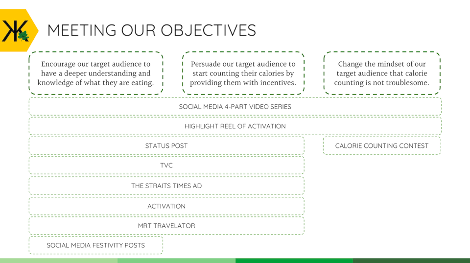 - Change the mindset of our target audience by showing them that calorie counting is not troublesome.